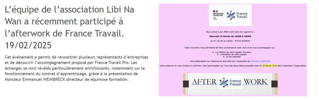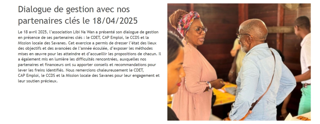 Créée en 1994, LIBI NA WAN est une association loi 1901 basée sur la solidarité et l’insertion. Son action vise à accompagner les populations dans l'insertion professionnelle, notamment les jeunes et les moins jeunes en difficulté, en leur offrant des opportunités de formation et d’emploi. À travers des chantiers d’insertion, et des formations aux métiers du bâtiment et de la menuiserie, l’association agit pour préserver les savoir-faire traditionnels tout en favorisant l’autonomie économique de ses bénéficiaires. LIBI NA WAN continue de se développer pour répondre aux défis de l’insertion et du développement local. L'insertion professionnelle, chantiers d'insertion et accompagnement social